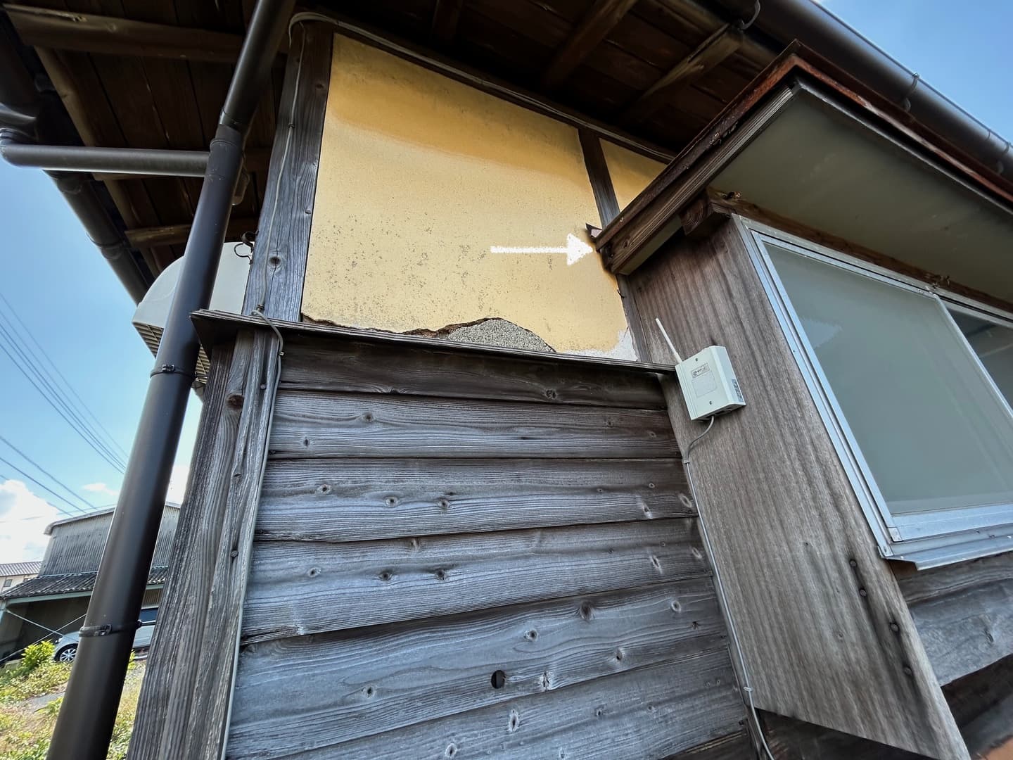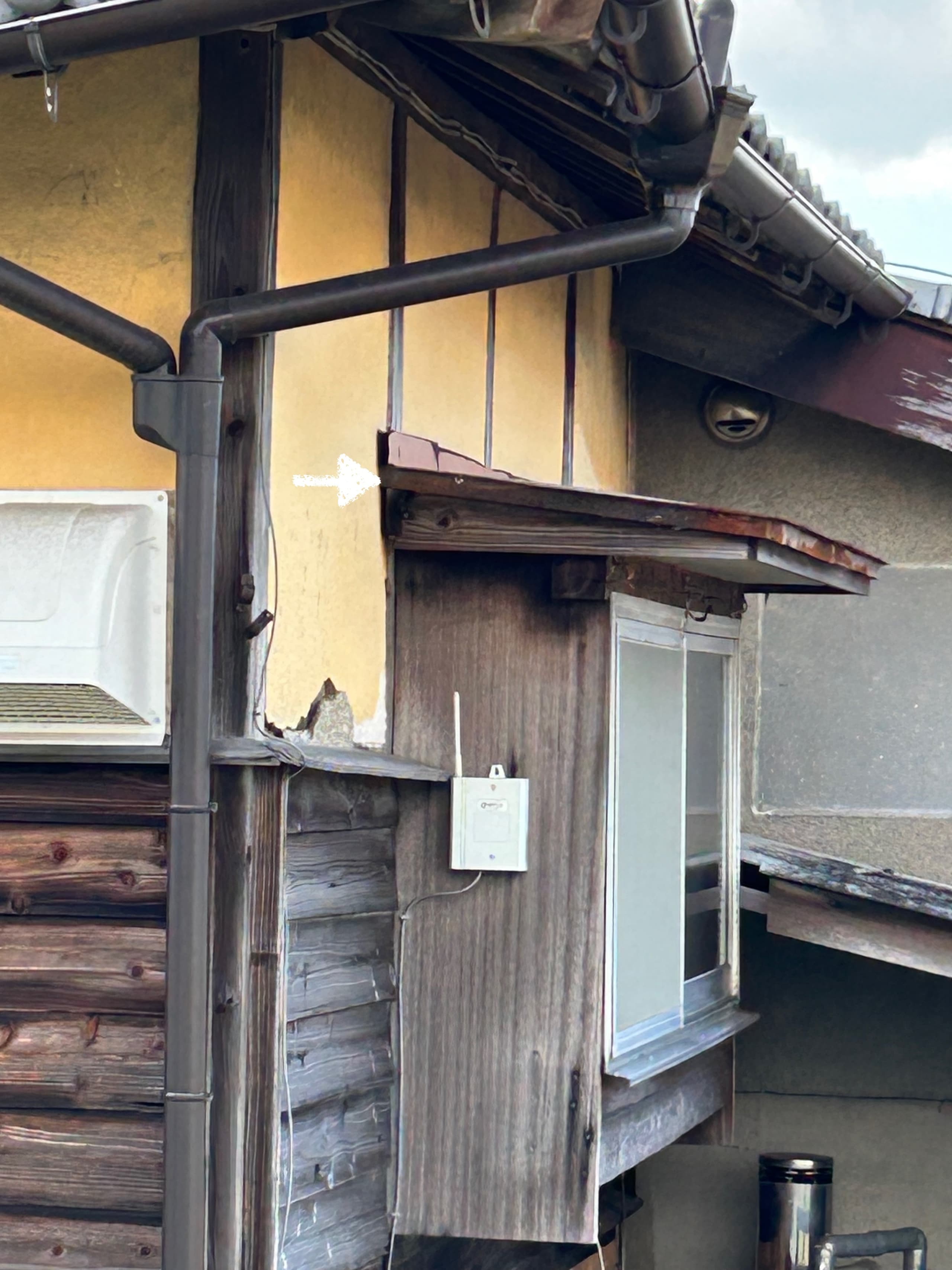 家の北側については左の2つの矢印部分が補修が必要な箇所 実家 家の北側については左の2つの矢印部分が補修が必要な箇所 矢印のところから雨漏り 台所の出窓 矢印のところから雨漏り 矢印部分の板が外れ、仮置きしている状態 下見板張りの劣化 矢印部分の板が外れ、仮置きしている状態 壁と出窓の隙間から雨漏りしている可能性あり 台所の出窓 壁と出窓の隙間から雨漏りしている可能性あり 台所の出窓 矢印部分は出窓の下の部分が外れて落ちているのではないか 2階の出窓 矢印部分は出窓の下の部分が外れて落ちているのではないか 押し入れとの壁に穴が空いている 縁側の端 押し入れとの壁に穴が空いている ホース付き吐水口・水栓の交換 洗面台 ホース付き吐水口・水栓の交換 ホース付き吐水口・水栓の交換 洗面台 ホース付き吐水口・水栓の交換 洗面台